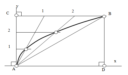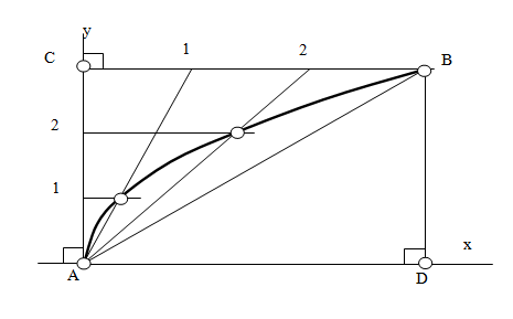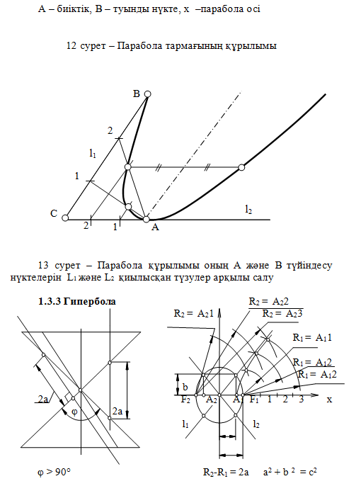 Парабола тармағын құруда А және В нүктелері ескеріледі, А нүктесі – биіктік, В нүктесі – параболаның туынды нүктесі (12 сурет).