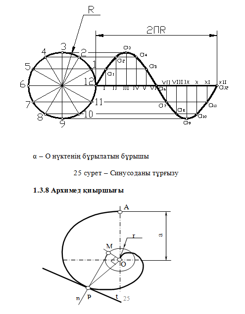 Синусоид құрылымы 25-ші суретте көрсетілген. О нүктесі тепе-тең айналады, бір айналымды диаметр шеңбері бойынша көрініс алып, бір уақытта πd қашықтығында іске асады.