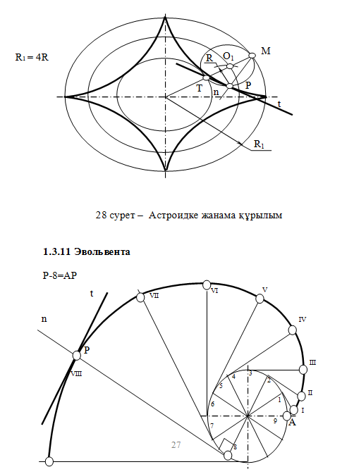 Астроидқа жанама құрылым 28-ші суретте орын алған. Ол бұрынғыға ұқсас ыңғайда, астроид R1 = 4R мәнінде алынған гипоциклоид.