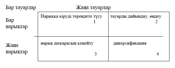 1. Нарыққа ену стратегиясы – нарық үлесін жаулап алу мақсатымен төмен баға тағайындауды көздейді, ол тек қана сыйымдылығы және баға бойынша сұраныс икемділігі жоғары нарықта тиімді болып табылады. Бұл стратегия мына жағдайларда ғана қолданылады: