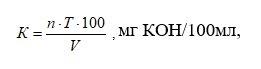 мұндағы n - бейтараптандыруға жұмсалған КОН ерітіндісінің мөлшері, мл;