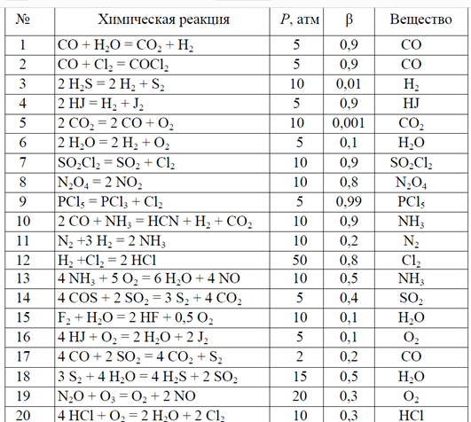 1. Газ тектес заттарды иеальды күйде деп, қалыпты жағдайда химиялық реакцияның (кесте 1) жылулық эффектісін ∆Н0298 анықтаңыздар. Реакцияға түсетін ∆Н0298 энтальпия түзілуінің мәндерін анықтамалықтан (справочник) қараңыздар.