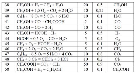 32. Газ тектес заттарды иеальды күйде деп, CH3OH+H2=CH4 + H2O реакциясы үшін жылу сыйымдылықтың температураға тәуелділік ∆Cp=∆a+∆bT+∆cT2+∆c'T-2 теңдеуіндегі ∆a ∆b ∆c ∆c' коэффициенттерін анықтаңыздар.