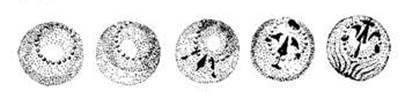 Figure 9 - Colouration of the eggs of the sunn pest - Eurygaster integriceps Put. (according to Grivanov).
