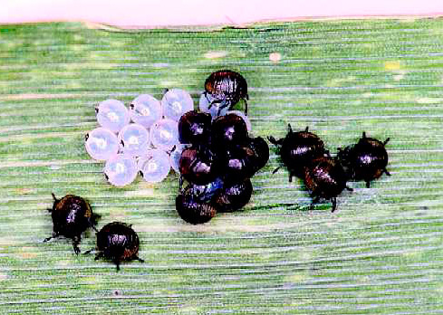 Eggs laid by females in autumn on winter crops and various cereal weeds usually winter; they are often found in leaf sheaths. The eggs are pale green and about 1 mm long.