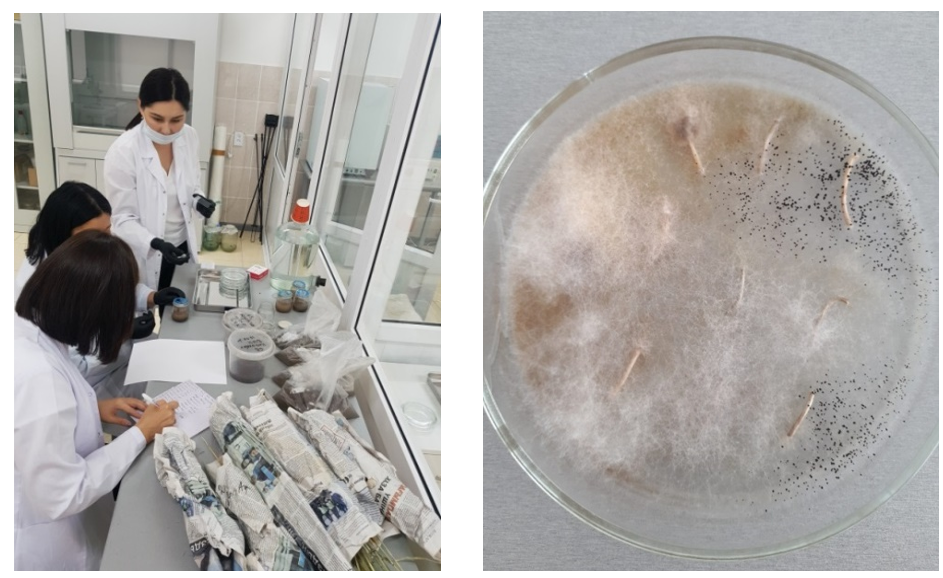 The incidence of spring wheat with phytopathogens was assessed according to State Standard 12044-93 "Methods for determining disease infection" [36] (Figure 24).