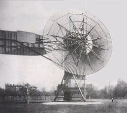 Первое упоминание о создании ветроэнергетической установки (ВЭУ) для получения электрической энергии относится к 1887 году. Она была разработана Джеймсом Блайтом в Шотландии и обеспечивала зарядку аккумуляторных батарей, используемых в домохозяйстве. Первая автоматизированная ВЭУ для производства электроэнергии мощностью 12 кВт была создана Чарльзом Брашем в 1888 году в США в Кливленде, Огайо (рисунок 5). ВЭУ использовалась для подзарядки аккумуляторных батарей, а также для питания осветительных ламп и различных двигателей в лаборатории Браша [46].