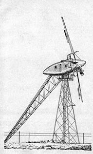 Предшественница современных ветряных электростанций с горизонтальной осью появилась в 1931 году недалеко от Ялты. Данная ВЭУ с мощностью 100 кВт и 30 метровой башней была настоящим гигантом своего времени (рисунок 6) [47].