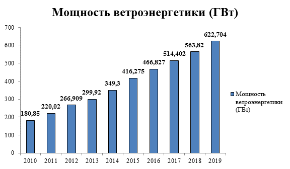 Динамику развития ветроэнергетики можно проследить на диаграмме ниже [44].