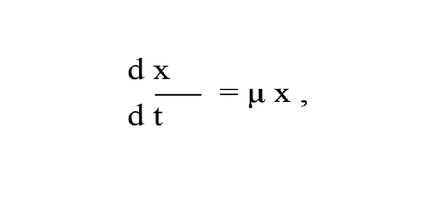 Если μ является постоянной величиной, то такой рост культуры микроорганизмов называют экспоненциальным или логарифмическим. Он имеет место тогда, когда состав микробной биомассы и условия окружающей среды остаются постоянными. Это относится и к смешанным культурам, в которых одноклеточные организмы равномерно распределены в культуральной среде.