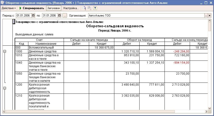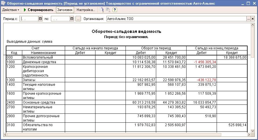 1.Есеп беруді құру үшін менюдағы «Есеп берудің» «Айналымды-сальдо ведомосі» пунктісін таңдаңыз.