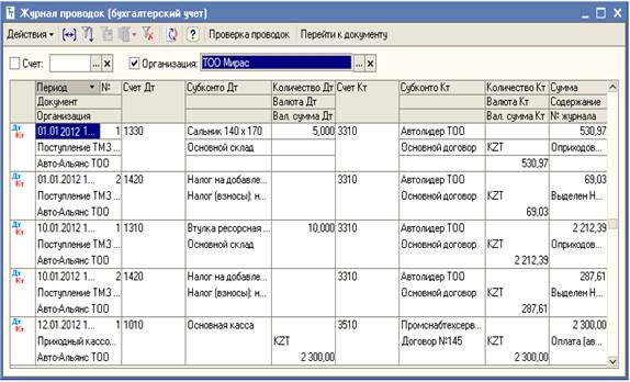 Журналмен жұмыс кезінде нақты операцияға тиісті проводкаларды ғана қарауға болады, ал кері жағдайда журғалға енігзілген барлық проводкалар шығады.