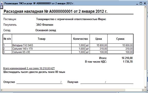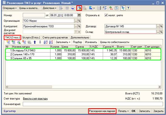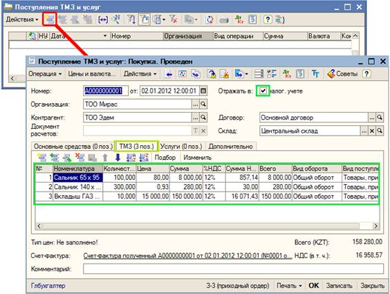 Құжаттың пішінін тауардың және қызмет атқарудың түсімі жап. Осы үшін төменгі бөлікте жап- құжаттың пішіндерін түймеге деген бас. Құжат ақпараттық базада тіркелген.