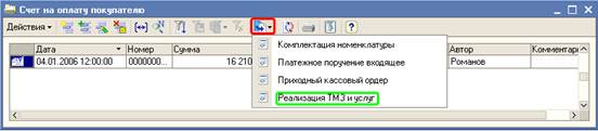 Сатып алушы төлеуге құжаттары тізімде құжат жасалмай бұрын ерекшелеңіз және (немесе тышқанның оң батырмасынмен шертіп жіберіңіз және ащқан міәзірде негіздеуді таңдаңыз) батырмаға басыңыз. Ұсынылған тізіді таңдаңыз – тауарларды өткізу және қызмет көрсету, 25- суреттегідей.