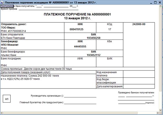 29-сурет – Төлем тапсырмасының баспа пішіні
