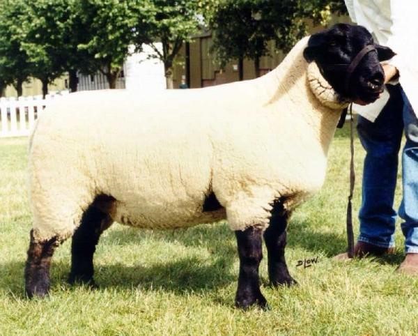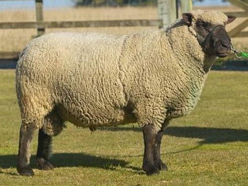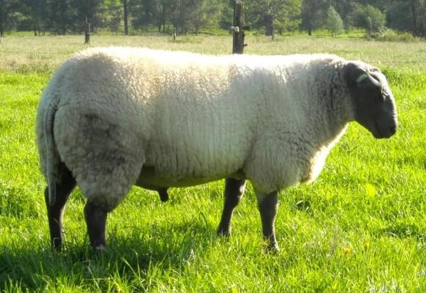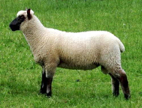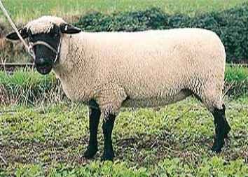 Суффольк. Английская мясо-шерстная порода овец, одна из лучших мясных пород овец Англии.Выведена в 1797 году путём скрещивания баранов Сауздауна с овцами Рогатого Норфолька. Это крупные, с отлично сложенными мясными формами телосложения животные с высокой скороспелостью. Племенная книга была основана в 1886 году. Окрас белый с чёрной головой и ногами. Порода комолая. Уши длинные, тонкие и слегка висячие. Хвост длинный тощий. Рост в холке у баранов 68-80 см, у овец 61-74 см. Вес взрослых баранов 90-180 кг, овец 68-136 кг. Шерсть тонина 25,5-33 микрон, длина 5-10 см. Настриг немытой шерсти с барана 3-4,4 кг, с овцы 2-3,1 кг. Выход чистой шерсти 50-62 %. Интервал между окотами 360-365 дней. Плодовитость 140-190 %, первокоток 130-180 %. Вес при рождении одинцовые 5-7,7 кг, двойни 4,2-5 кг, тройни 3,5-4 кг. В возрасте 4-х месяцев весят 35-80 кг. Половозрелость 6 месяцев. Среднесуточный привес ягнят 280-400 г. Убойный выход 50-52 %. Бараны широко используются для кроссов для увеличения темпов роста ягнят, большого веса, постных туш. Кроссы получаются весом в 40 кг в возрасте 15-16 недель с толщиной жира в туше 3 мм.