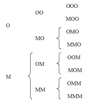 | MMM | OMM | MOM | OOM | MMO | OMO | MOO | OOO |