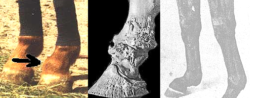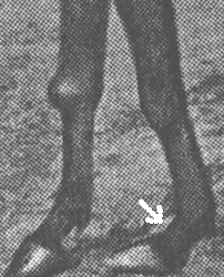 Жабка. Артроз путово-венечного или венечно-копытного суставов – костное разращение. Жабки бывают кольцевые и суставные, глубоко захватывающие суставы. Кольцевая жабка представляет собой костное разращение в области путово-венечного сустава, охватывающее часть или весь сустав в виде полукружия или полного кольца.