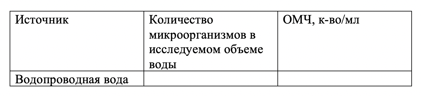 Задание 2. Заложить опыт по определению ОМЧ воды.