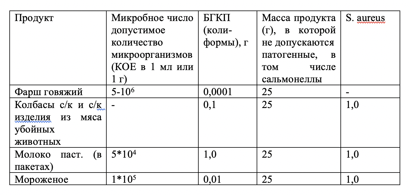 Таблица 7 – Некоторые санитарно-бактериологические нормативы (СанПиН 2.3.2.560-96)