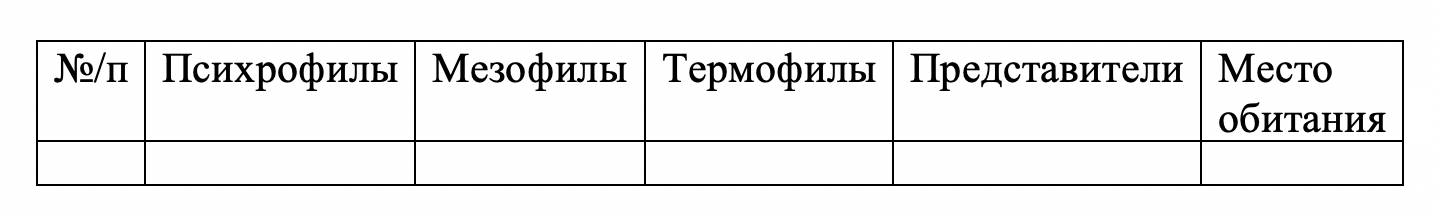 Таблица 10 – Характеристика микроорганизмов по отношению к температуре