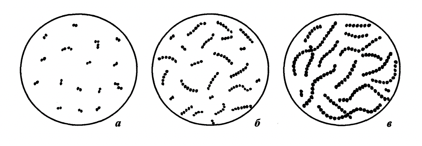 Рисунок 21 – Молочнокислые стрептококки: а – молочный стрептококк; б – сливочный стрептококк; в – термофильный стрептококк