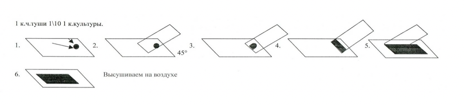 1. Смешать на предметном стекле немного культуры и каплю туши, разведенной 1:10.