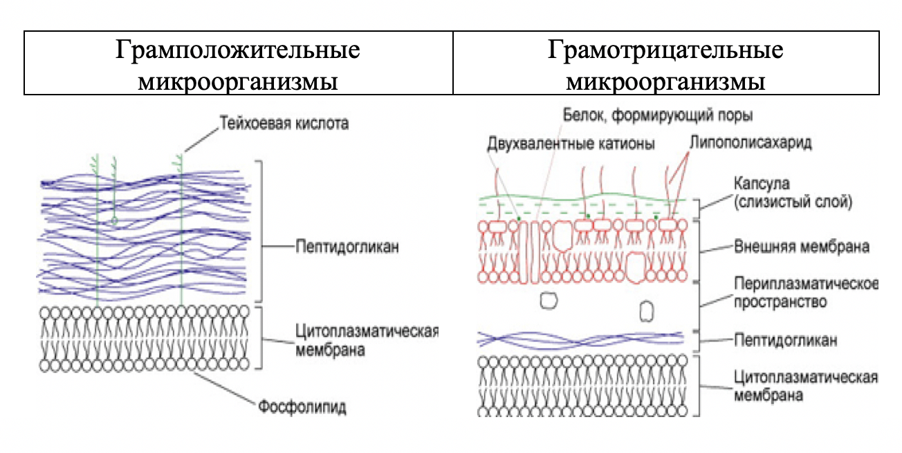 Рисунок 7 – Грамотрицательные и грамположительные бактерии