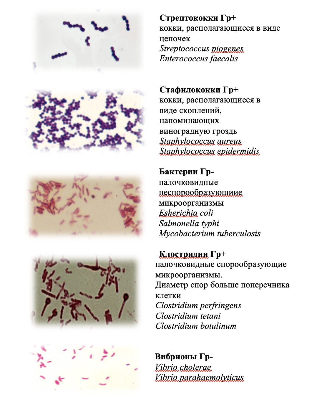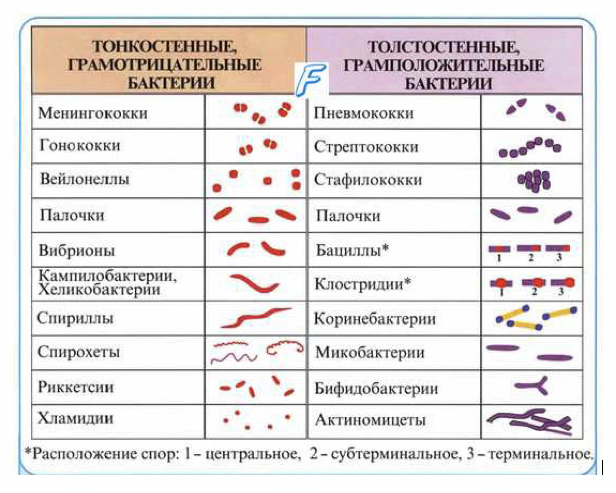 Грамположительные (Гр+) бактерии окрашиваются в сине-фиолетовый цвет. Грамотрицательные (Гр–) бактерии окрашиваются в красный цвет (см. таблицу 4 и рисунок 8).