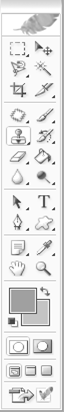 Панель инструментов - (Toolbox) содержит кнопки графических инструментов Photoshop. Эти инструменты предназначены для быстрого выполнения большинства операций и процедур, связанных с выделением, раскрашиванием, редактированием и просмотром изображений. Кроме того, панель инструментов содержит управляющие элементы для выбора цветов переднего и заднего плана, переключения в режим быстрая маска и изменения способа отображения изображений на экране. На кнопках некоторых инструментов есть маленькие треугольники в нижнем правом углу. Это свидетельствует о том, что у них имеются собственные раскрывающиеся панели дополнительных инструментов. Чтобы открыть такую панель, нужно нажать мышью на ее треугольнике.