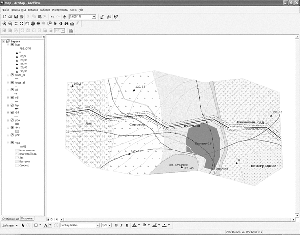 создание необходимых слоев: для местности, водоемов, населенных пунктов, линий дорог и электропередач, изолиний;