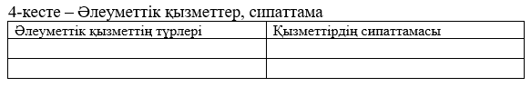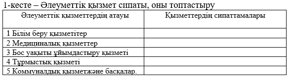 Әлеуметтік қызметтер кесте 1 ұсынылу керек.