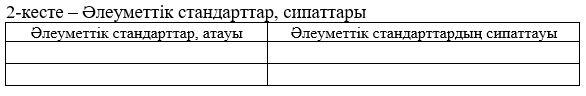 2.1.4 «Әлеуметтік стандарт: түсінігі, мәндік сипаттары» тақырыбы бойынша семинар сабағына тапсырма беру: