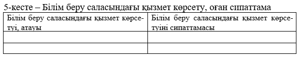 Білім беру саласындағы қызмет көрсету, оған сипаттама кесте түрінде ұсынылады (кесте 5)