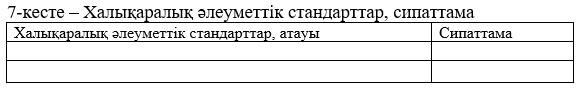Халықаралық әлеуметтік стандарттарды сипаттамасын кесте 7 бейнелеу керек.