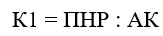 Отношение прибыли до выплаты процентов и налогов (ПРН) к величине активов (АК) по формуле (30)
