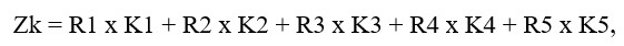 где R1, R2, R3, R4, R5 – весовые коэффициенты, характеризующие значимость каждого частного критерия.