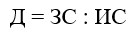Доля заемного капитала в общих источниках финансирования – характеризует качество финансовой структуры предприятия, определяется как отношение заемных средств (ЗС) к источникам покрытия имущества (ИС) по формуле (39)