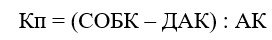 KП – коэффициент покрытия по рыночной стоимости капитала (отношение рыночной стоимости акционерного капитала к сумме краткосрочных обязательств);
