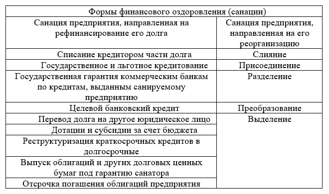Рисунок-7 – Формы финансового оздоровления
