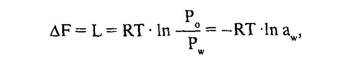 Где F – уменьшение свободной энергии (при постоянной температуре); L – работа отрыва 1 моля воды от сухого скелета материала (без изменения состава); R - универсальная газовая постоянная.