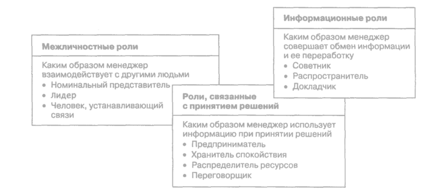 В классическом исследовании поведения менеджера Г. Минцберг при описании деятельности менеджеров вышел за рамки этого функционального подхода. Он идентифицировал десять ролей, распадавшихся на три категории, которые менеджер должен быть готов играть каждый день (рис.2).