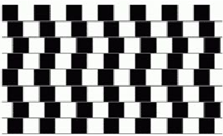 Иллюзия обнаружена Р. Грегори в кафе «Wall» в Бристоле (Richard Gregory, 1979). Прямые параллельны или горизонтальны? Прямые параллельны.