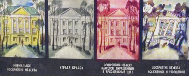 Элементарные и сенсорные расстройства (нарушение ощущения высоты, цветоощущения и т.д.). Эти нарушения связаны с поражениями подкорковых уровней анализаторных систем.