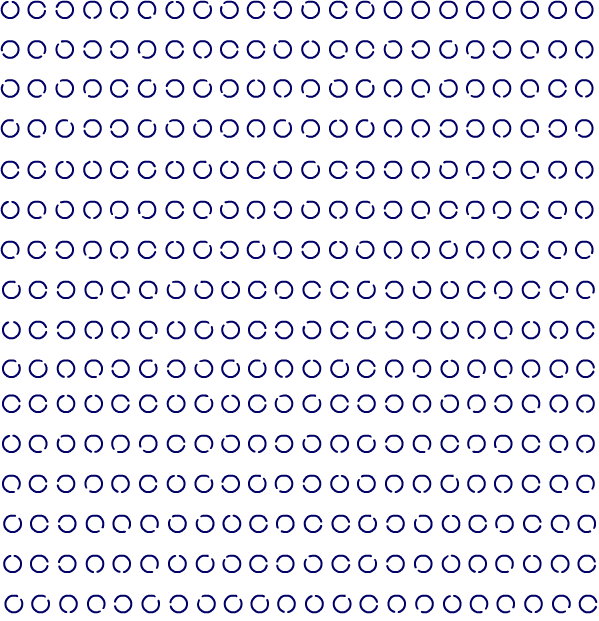 В таблице содержится по 32 кольца в строке, всего 32 строки. Испытуемые должны внимательно просматривать строки бланка и зачеркивать кольца с определенным разрывом. Можно регламентировать время проведения методики (например, 5 мин); сообщение в данном случае перед началом проведения методики того, что ее следует выполнить в течение пяти минут, провоцирует нервно-психическое напряжение у испытуемого и повышает сложность задания.