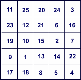 Отыскивание чисел по таблицам Шульте Методика применяется для исследования темпа сенсомоторных реакций и особенностей внимания. Исследование производится с помощью специальных таблиц, изготовление которых несложно. На этих таблицах в беспорядке расположены числа от 1 до 25.