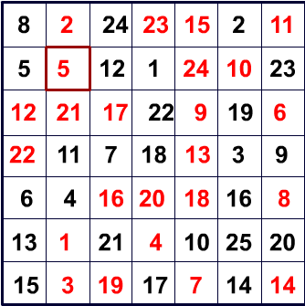 Для исследования используется таблица, разделенная на 49 клеток (7 на 7), в которых в случайном порядке расположены черные и красные цифры. Числа черного ряда — от 1 до 25, красного ряда — от 1 до 24.