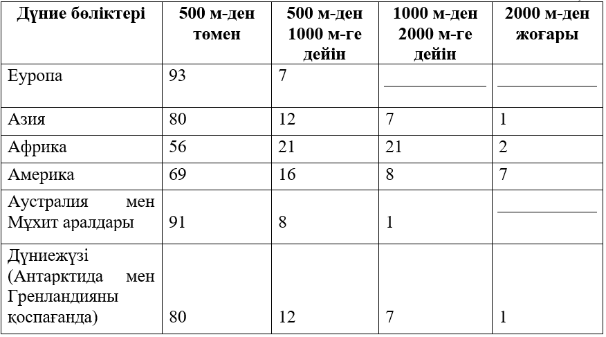 Халықтың биіктік белдеулер бойынша таралып орналсуы (% есебімен)