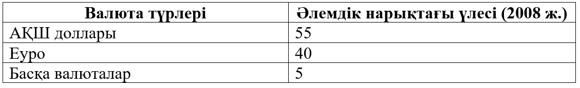 Дүниежүзіндегі резервтік валюта құрылымы, % есебімен