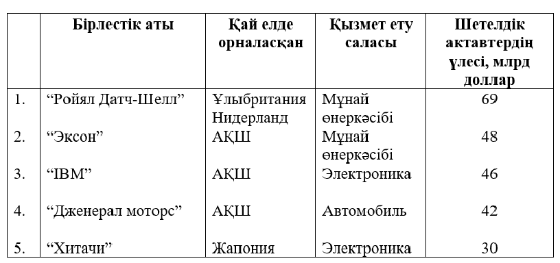 Қазақстан экономикасының дамуында егемендік алғаннан бастап, шетелдік несиелер мен инвестициялар белсенді пайдаланыла бастады. Ресми көмек ауқымында Қазақстан 2,8 млрд доллар көлемінде несие туралы 49 келісім жасады. 1993-1999 жылдары оның 1,7 млрд доллары игерілді. Республикаға көрсетілген көмектің 53%-ы Әлемдік Банкке, 18,3%-ы Азиялық Даму банкіне, 17,3%-ы Жапония мемлекетінің үлесіне тиеді. Ал тәуелсіздік алғаннан бергі Қазақстан экономикасына шетел инвестициясының келуі 10 млрд доллардан асты. Жарияланған деректер бойынша, инвестиция құрылымының 49%-ын тікелей, 1 %-ын портфельдік инвестиция, ал 28%-ын несие, 22%-ын халықаралық қаржы ұйымдарының заемы құрайды. Тікелей инвестицияның 60%-ы мұнай өндіру мен өңдеуге, 10%-ы түсті металлургия, 5%-ы газ өндіру саласына, ал қалған бөлігі қара металлургия, пайдалы қазбаларды барлау, тамақ өнеркәсібі, ауыл шаруашылығы және жаңа технологияларды енгізу мен ғылымды қолдау салаларын дамытуға салынды. Шетелдік инвестицияның Қазақстан экономика-сына салыну мөлшері бойынша 1 -орынды Жапония - 25,4%, 2-орынды АҚШ - 21,5%, 3-орынды Ұлыбритания - 17%-ын иеленеді.